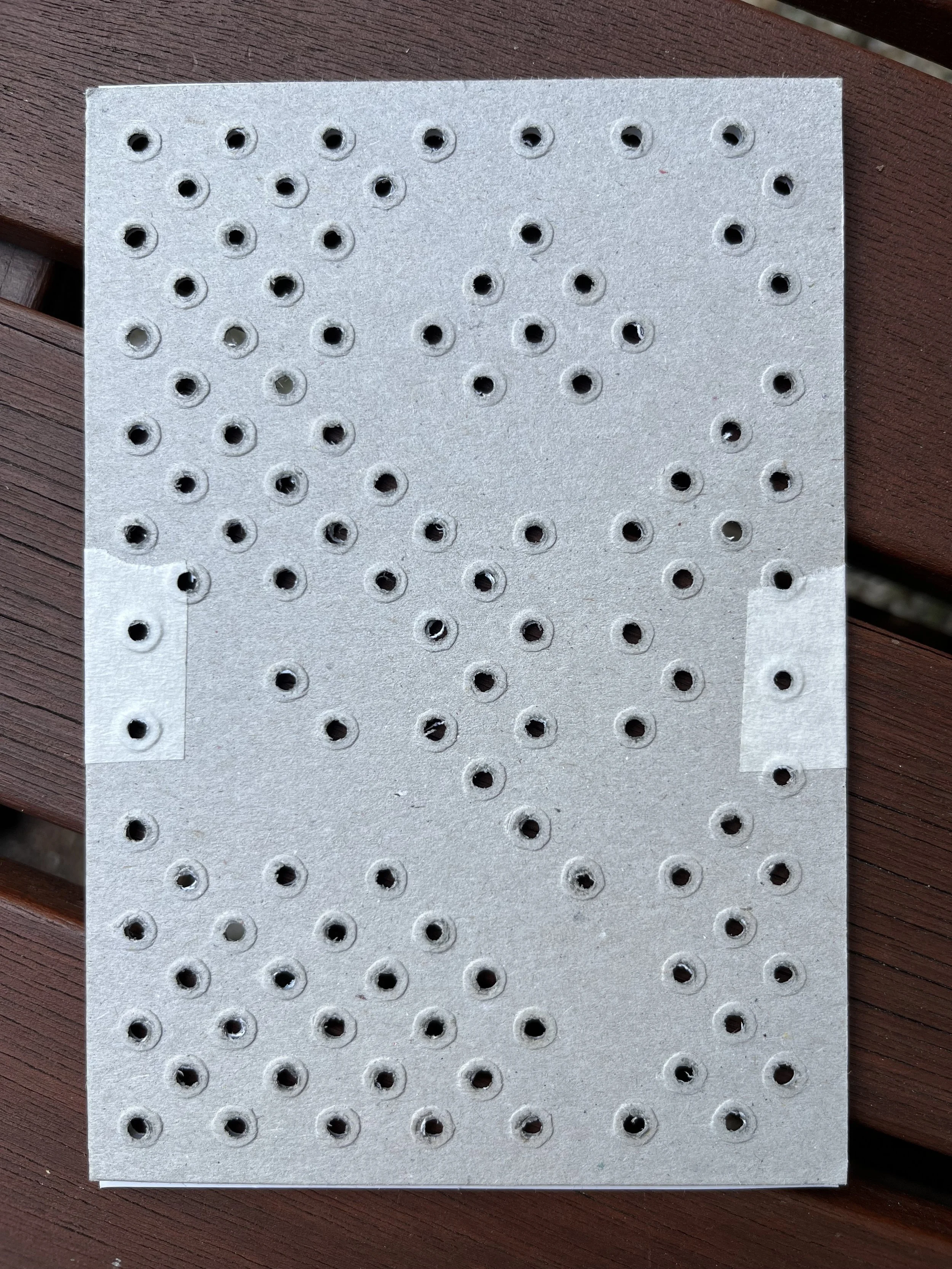 For my contribution, I took the iconic analog jacquard loom’s punch card as a starting point. I punched holes into the paper base I was given - using a selfmade stencil. The created ‘grid’ shows the silhouette of a flax flower in bloom.