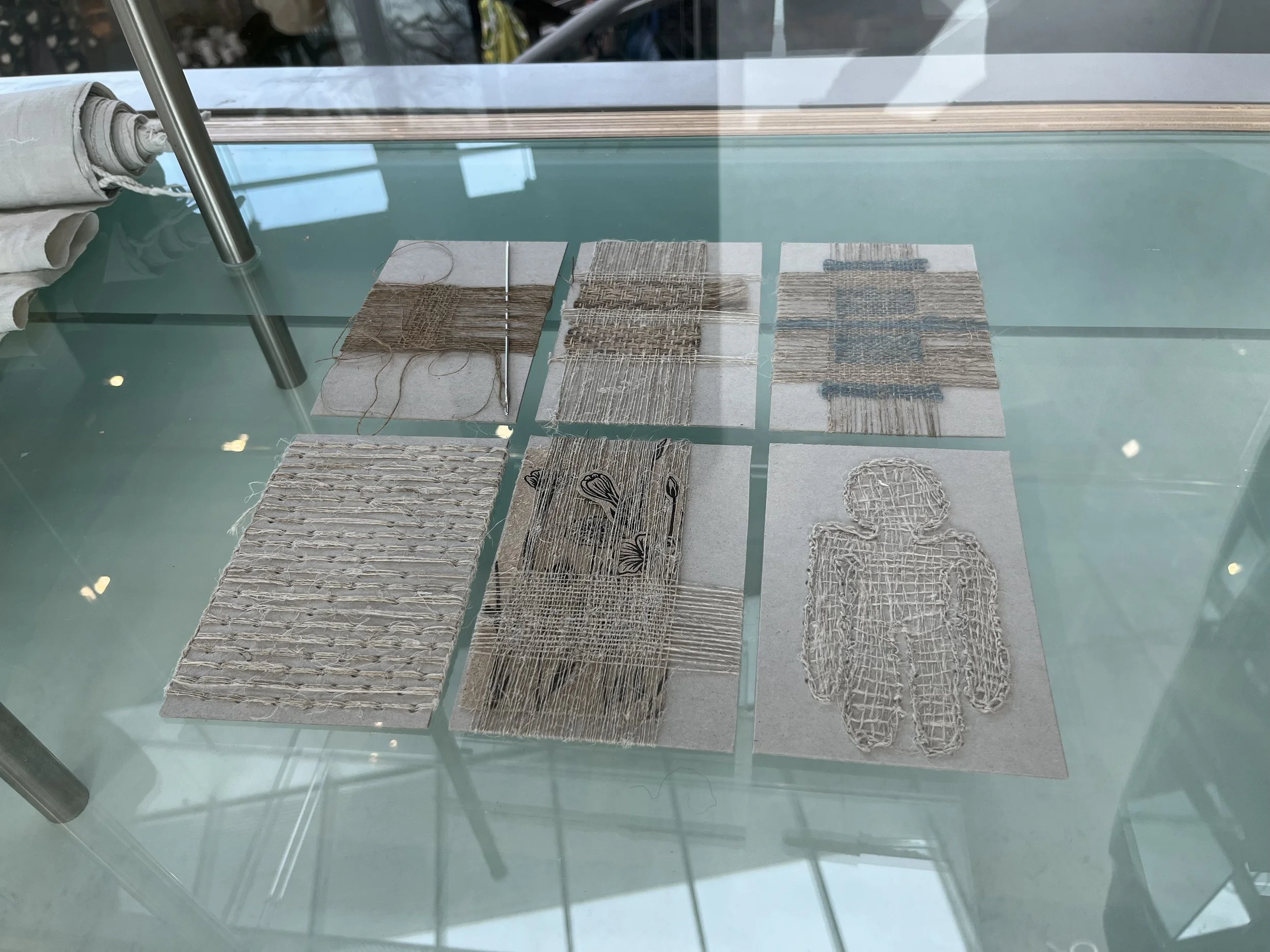 In the context of The Linen Project’s stewardship, a group of members joined forces in making a collection of small woven sculptures – using selfgrown, handspun linen yarn and an A6 sized piece of cardboard.